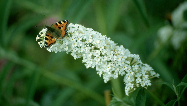Schmetterlinge lassen sich durch den Sommerflieder in den Garten zaubern. Hierdurch kam er auch zu seinem Namen: Sommerflieder oder Schmetterlingsstrauch bzw. botanisch korrekt: Buddleia davidii