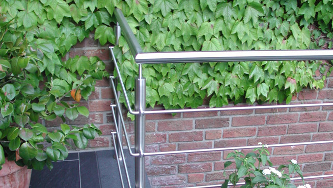 Geländer aus Edelstahl, leichte und moderne Optik.