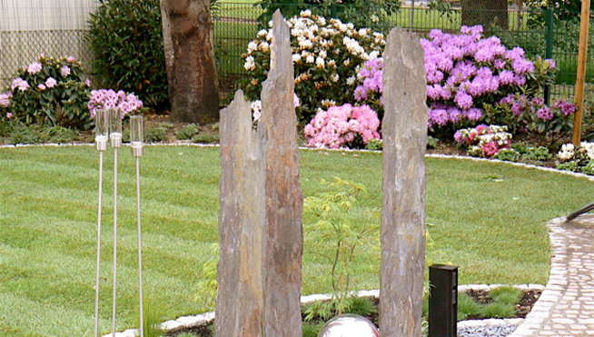 Stein, ob als Naturstein, als Betonstein, als Ziegel oder Terracotta schafft Grenzen, Strukturen und Räume. Er findet Verwendung als Findling, als Kiesel, als Platte, als Pflaster, oder als Mosaik. Er gestaltet Bereiche in denen man sich aufhält, in denen man sich bewegt, geht und steht.