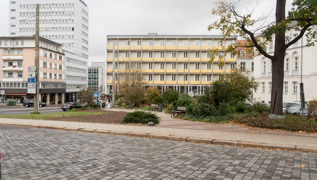Kassel 1964 - Platz vor dem Landesmuseum Kassel - Landesmuseum und Hauptwache Brueder-Grimm-Platz Kassel - Ansicht Ehemalige Post Brueder-Grimm-Platz Kassel - Denkmal Brueder-Grimm-Platz Kassel - Sandsteinmauer Brueder-Grimm-Platz Kassel - Hotel Hessenland Brueder-Grimm-Platz Kassel - Wegeführung